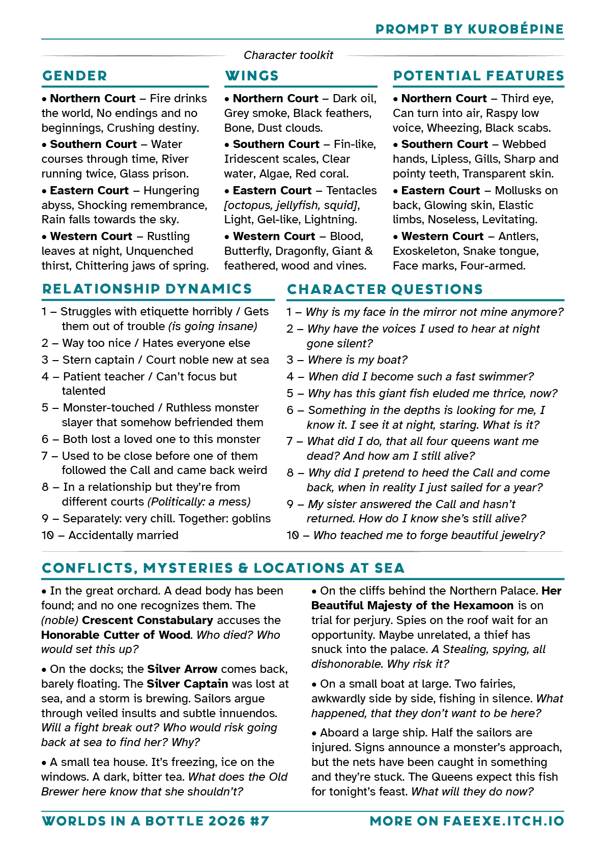 | Tags | curious, fae, fairy-courts, Fantasy, Fishing, micro-setting, Queer, sea-core, Tabletop role-playing game, weird-core |